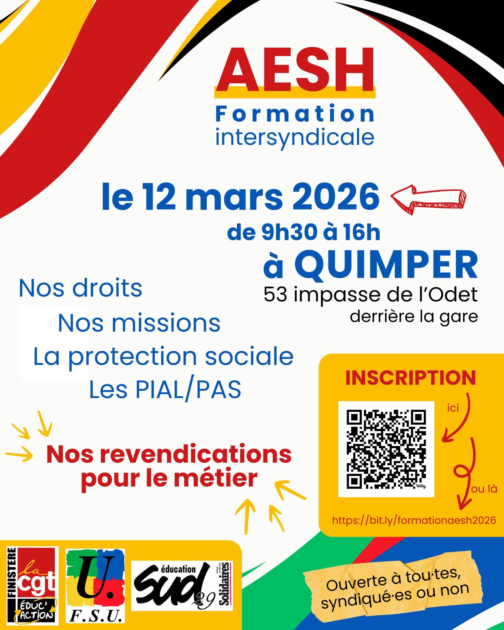 Un stage AESH organisé par l’intersyndicale FSU/CGT/SUD se déroulera jeudi 12 mars 2026 à Quimper.