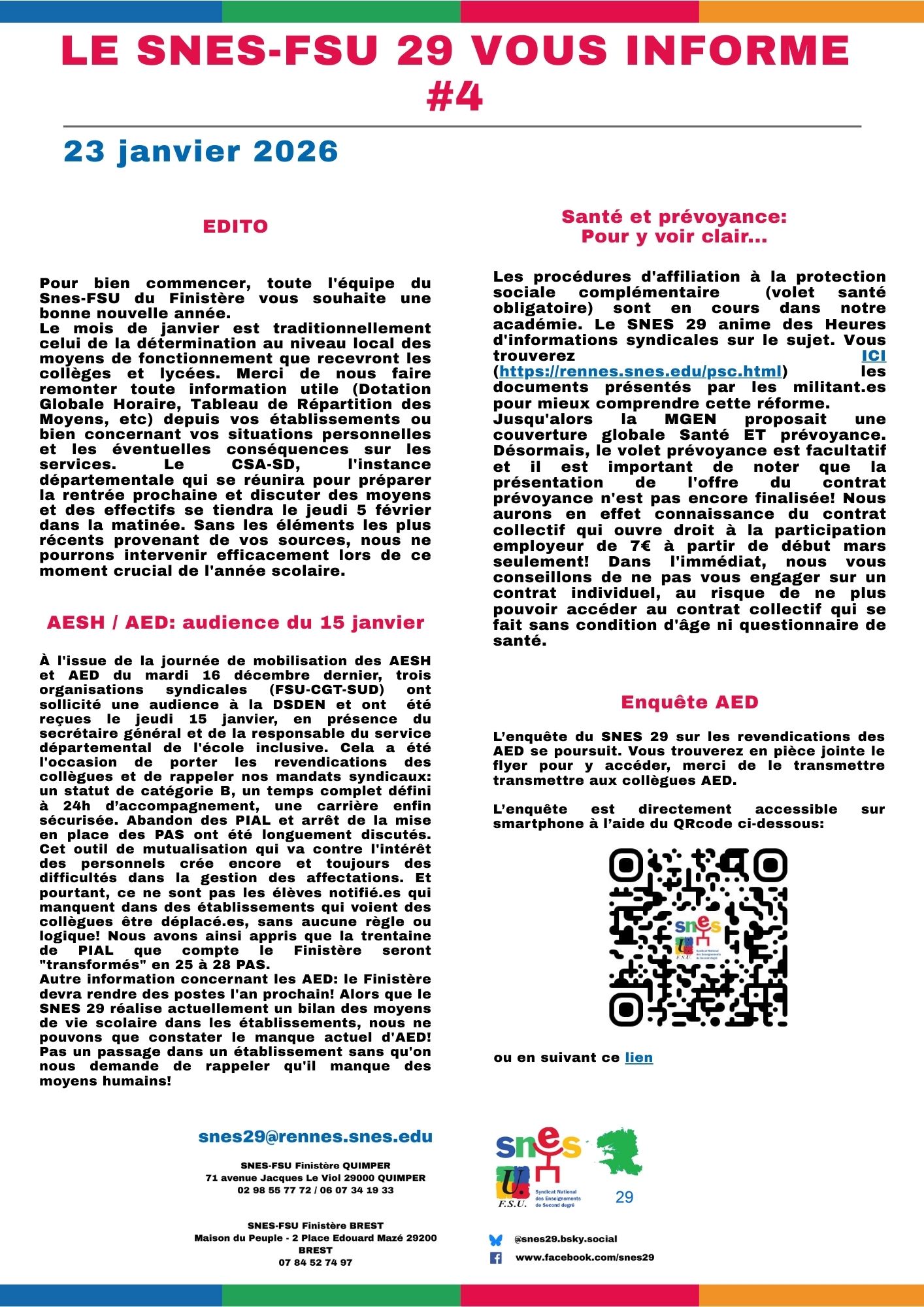 Vous êtes ici : Accueil Sections départementales SNES 29 Le SNES 29 vous informe 2025/2026 Le SNES 29 vous informe #4 23 janvier 2026 Sections départementales Le SNES 29 vous informe #4 Imprimer l'article En téléchargement avec les liens ici :